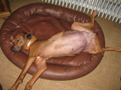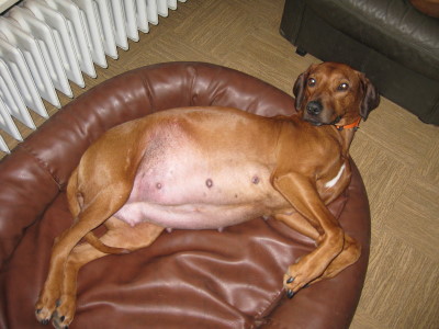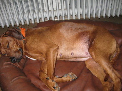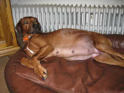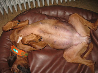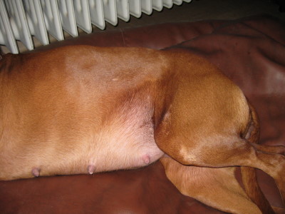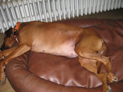 22.12.2008 - Unserer Motte geht es gut mit dem Babybauch. Wir sind im 47. Trächtigkeitstag und ihr Bauchumfang ist 83cm. Am liebsten liegt sie im Moment auf dem Rücken.