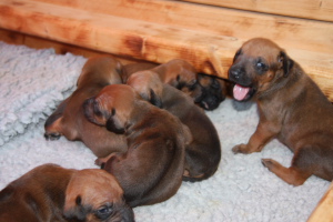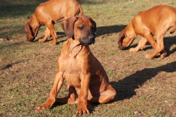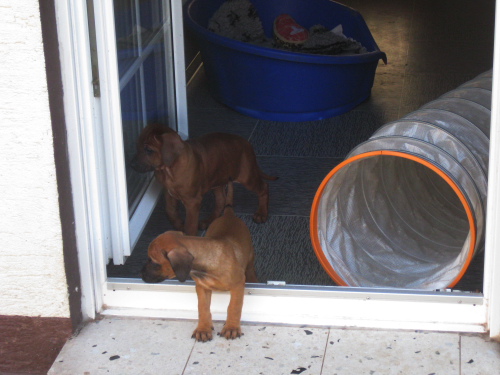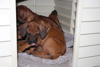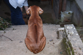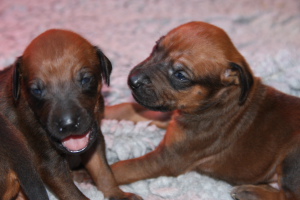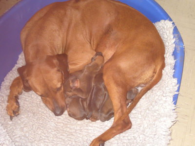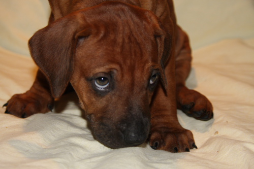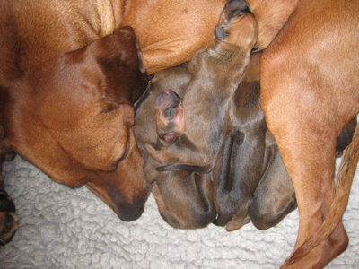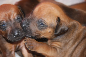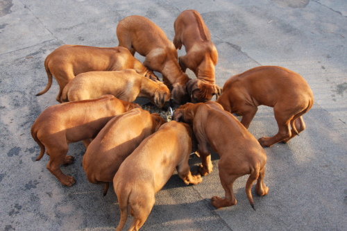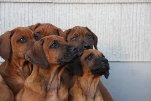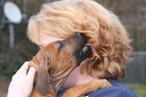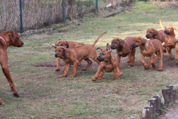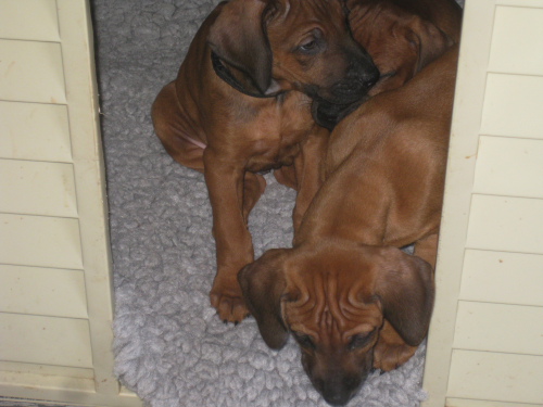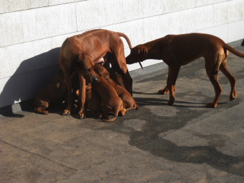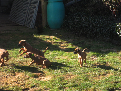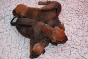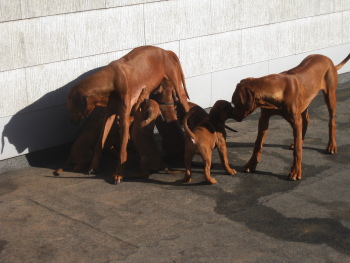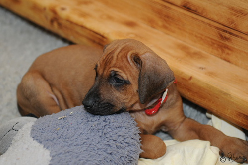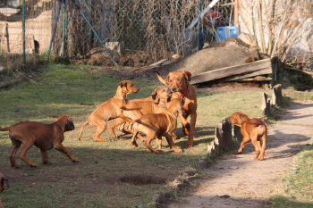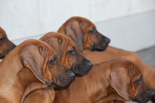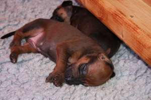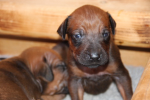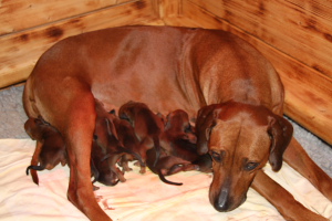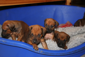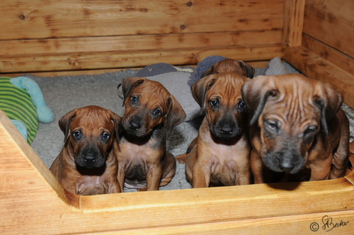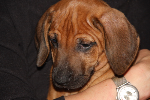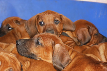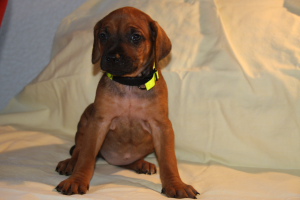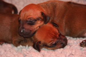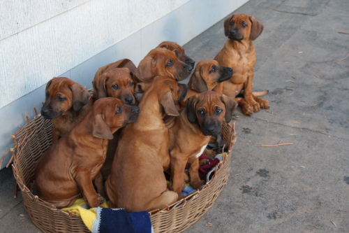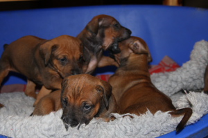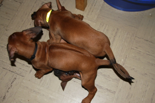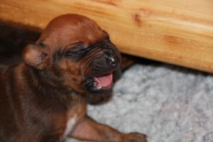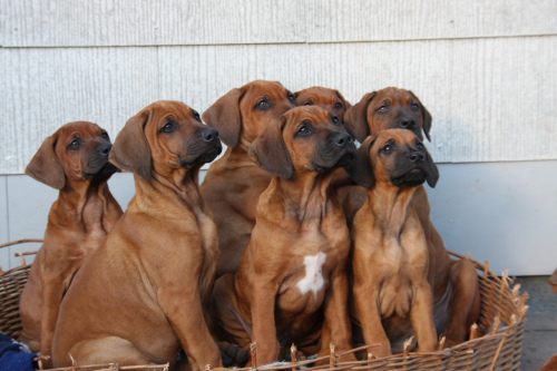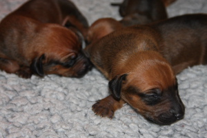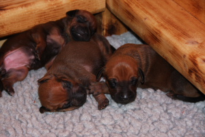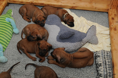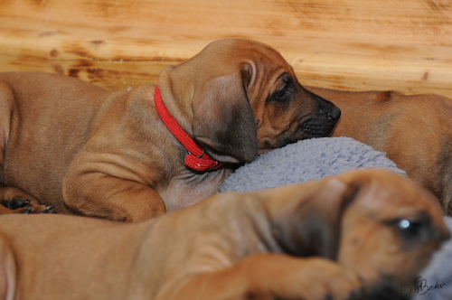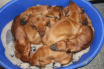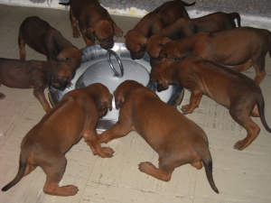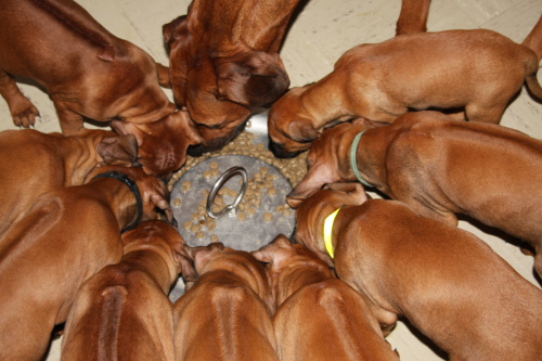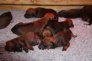22.01.2011 - Gestern wurden "alle Neune" geimpft und gechipt und haben somit ihre erste Autofahrt hinter sich gebracht. Das Auto wurde wieder sauber verlassen und der Arzt hat sich wie immer über unsere mutigen und furchtlosen Helden gefreut. Und jetzt werden wir Einzelbilder mit Namen präsentieren: 1. Hündin: Gibsy Memory of the old red Hunter (kleiner länglicher Brustfleck) 2. Hündin: Glenda Memory of the old red Hunter (ohne Ridge, winziger Brustfleck, rot) 3. Hündin: Gimbaya Memory of the old red Hunter (ohne Abzeichen, blau) 4. Hündin: Galva Memory of the old red Hunter (großer Brustfleck) 5. Hündin: Genia Memory of the old red Hunter (Doppelherz-Brustfleck, silber) 6. Hündin: Ginger Memory of the old red Hunter (ohne Ridge und ohne Abzeichen, neon) 7. Hündin: Gioia Memory of the old red Hunter (ohne Ridge und ohne Abzeichen) 1. Rüde: Gizmo Memory of the old red Hunter (ohne Abzeichen) 2. Rüde: Grispin Memory of the old red Hunter (ohne Abzeichen, neon)