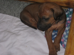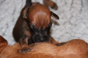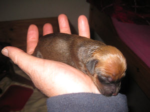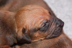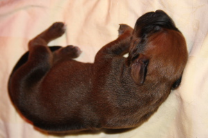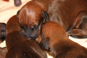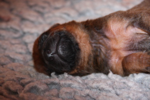 19.12.2010 - Unser kleines Mäuschen Gerdda mit 210g. Sie ist munter und trinkt fleißig an den Zitzen. Nur ist sie halt immer schneller satt als ihre dickbäuchigen Geschwister. Eine kleine Schönheit, die wir eventuell noch in Greta umtaufen müssen (die Stimme dazu hätte sie auch). ![]()