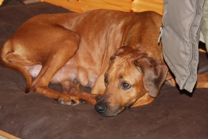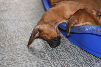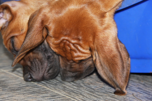 die haben einen Durchhänger (das Ohr (ein Klecks auf dem Boden :-)))) hey Frauchen, bald können wir auf dem Sofa kuscheln :-) wir sehen uns wieder ...