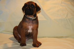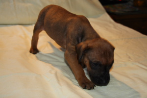 15.01.2011 - Heute hatten "alle Neune" Besuch von Sabine, Mathias und Max. Die Drei konnten gleich mal das Milchbad miterleben und sich über die lustigen Spieleinlagen freuen. Die Kleinen kämpfen nun schon miteinander oder mit dem großen Unbekannten. Sie kommen jetzt meistens schon selbstständig aus der Wurfkiste und wenn nicht, wird lauthals geschrien. Gestern wurde die Nacht zum Tage gemacht und Madame mit "weißem Brustfleck" meinte sie könnte die Geister mit Bellen vertreiben.