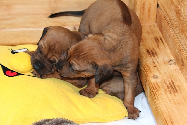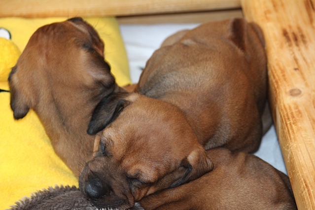 - Die Welpen wachsen und gedeihen und lassen sich die dicken Bäuche von