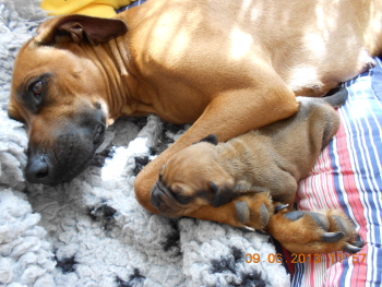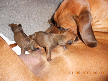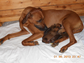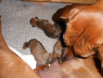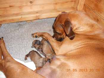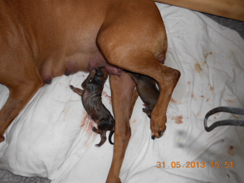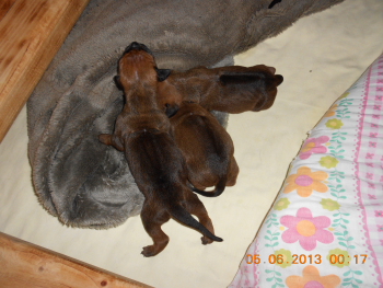 01.06.2013 - Unser I-Wurf ist geboren: Gestern brachte Dusty drei Welpen zur Welt und