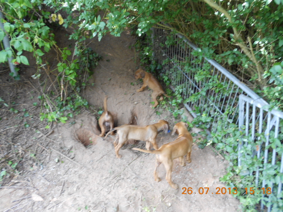 27.07.2013 - Erdferkel im Garten... Wer baggert denn da noch so spät am Baggerloch ...??? Wo sind denn die Geschwister ??? Wir müssen das Haus bewachen! Ey, kommt lieber mit in den Dschungel, Löcher graben. Den ganzen Tag nur Blödsinn im Kopf Ob da jemals wieder etwas wächst ???