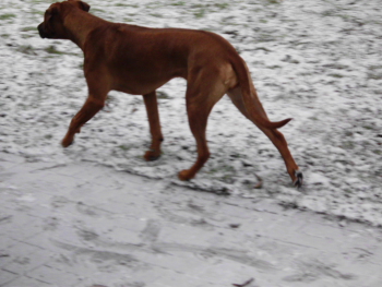 Sie ist einfach eine super Hündin, mit der ich gerne Bett und Couch teile - denn Schmusen und Kontaktliegen ist Tamys größte Freude! Tamy ist überall ein gern gesehener Gast. Die Ausstellung in Reinsehlen war unsere dritte. Im Januar 2014 waren wir in Castrop-Rauxel (versprechend, Jüngstenklasse), im November 2014 in Hannover (V3, Jugendklasse) und im Mai 2014 in Reinsehlen (V4 am 16.05. und V2 am 17.05.2014). - Tamy hat nie Ringtraining gemacht - sie ist so ausgebildet, dass sie alles mitmacht, egal ob Ausstellungsring oder Schützenfest! Anmerkung von mir: In ihrer Bescheidenheit hat Stephanie nicht erwähnt, dass bei einem abendlichen Auslauf Tamy so lange ein Gebüsch verbellt hat, bis Steffi sich ein Herz nahm und nachschaute was los war. In dem Gebüsch lag eine besinnungslose Frau, die nun vom Notarzt noch rechtzeitig versorgt werden konnte. Da zu dieser Zeit nachts noch Minusgrade vorherrschten, hätte die Frau ohne Tamy den sicheren Tod duch Unterkühlung gefunden.