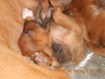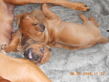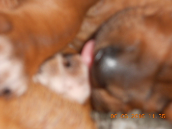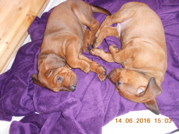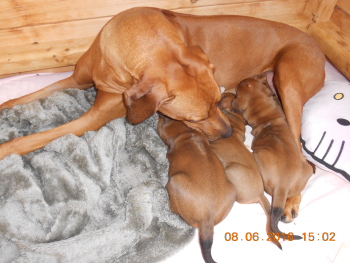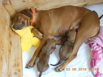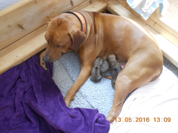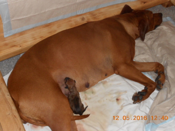 Es sind zwar gerade keine Vorzeigewelpchen, aber sehr zufrieden,