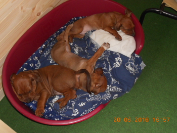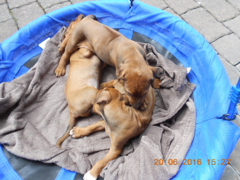 09.06. 2016 - Wir können schon aus dem Napf fressen - danach ein wenig raufen - dann schlafen -