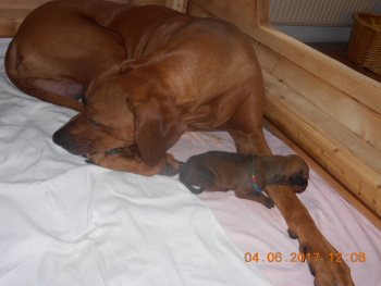Wir haben uns für eine Wurfwiederholung unseres K-Wurfes entschieden: ![]() Franci mit ihrer Nachzucht